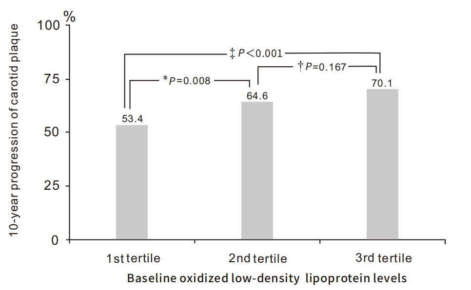 ●在健康的中年男性中,高ox-LDL水平個體患冠心病的風險比正常個體高4倍