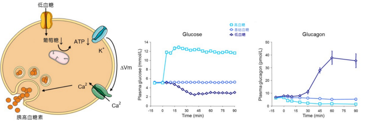 T2DM患者的胰高血糖素分泌調(diào)節(jié)功能受損,是導(dǎo)致糖尿病高血糖的重要原因。具體來說,T2DM的特點(diǎn)是空腹時(shí)胰高血糖素水平升高,而口服葡萄糖后胰高血糖素的抑制作用受損,甚至出現(xiàn)矛盾性升高。這通??山忉尀榈鸵葝u素血癥和α細(xì)胞的胰島素抵抗導(dǎo)致的胰島素對(duì)α細(xì)胞的抑制作用減弱。