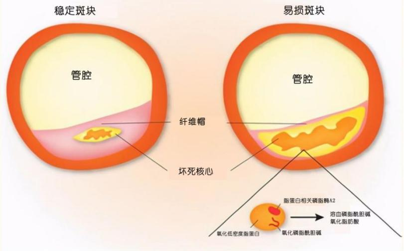 硬斑塊相對(duì)來(lái)說(shuō)比較穩(wěn)定,而軟斑塊和混合斑塊穩(wěn)定性差,醫(yī)生們習(xí)慣稱其為易損斑塊。