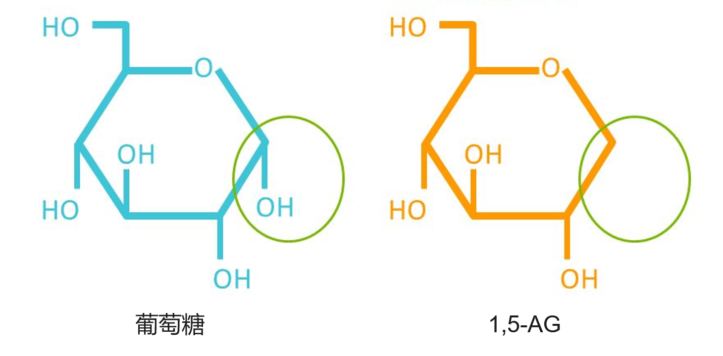 1,5-AG是一種與葡萄糖結(jié)構(gòu)相似的多元醇,在血清中含量?jī)H次于葡萄糖的多元醇糖,以游離形式廣泛分布于全身各組織器官。人體內(nèi)1,5-AG主要來(lái)自食物攝入,1,5-AG可自由通過(guò)腎小球基底膜,99.9%在腎小管被重吸收。