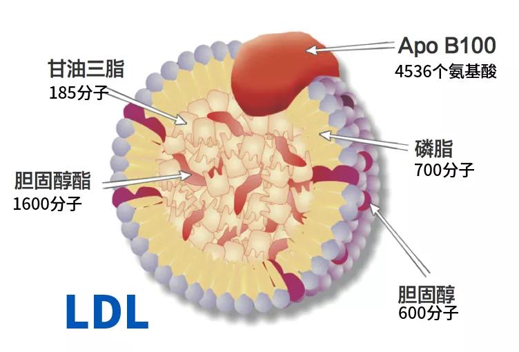 低密度脂蛋白(LDL)是一種運載膽固醇進入外周組織細胞的球形脂蛋白顆粒,核心包括1600 個膽固醇酯、700 個磷脂和600個游離膽固醇分子;LDL標志蛋白Apo B-100[1]。