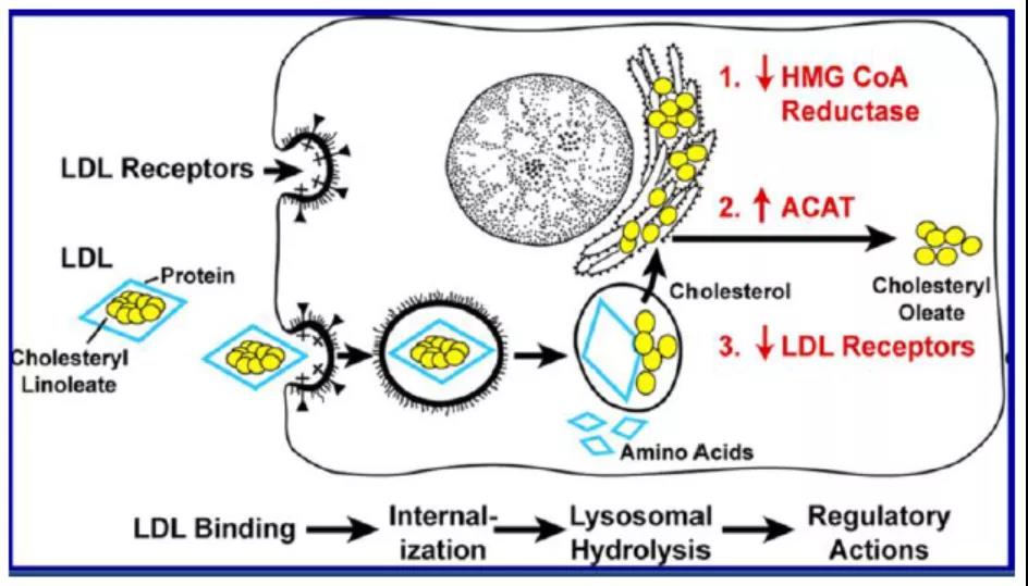 低密度脂蛋白受體存在于肝臟和大多數(shù)其他組織中,它識別 Apo B-100 和 Apo E,通過內(nèi)吞作用介導(dǎo)攝取LDL、乳糜微粒殘余物等,脂蛋白顆粒在溶酶體中降解并釋放膽固醇[2]。