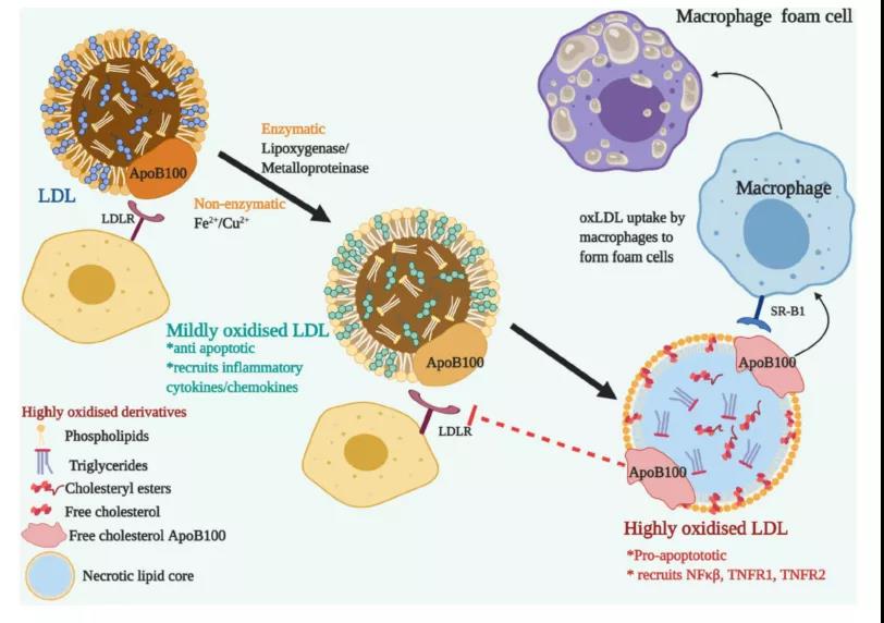 氧化低密度脂蛋白(ox-LDL)是低密度脂蛋白被完全氧化后,誘導(dǎo)巨噬細胞內(nèi)的膽固醇積聚和泡沫細胞形成的元兇,是動脈粥樣硬化的重要危險因素[5]。